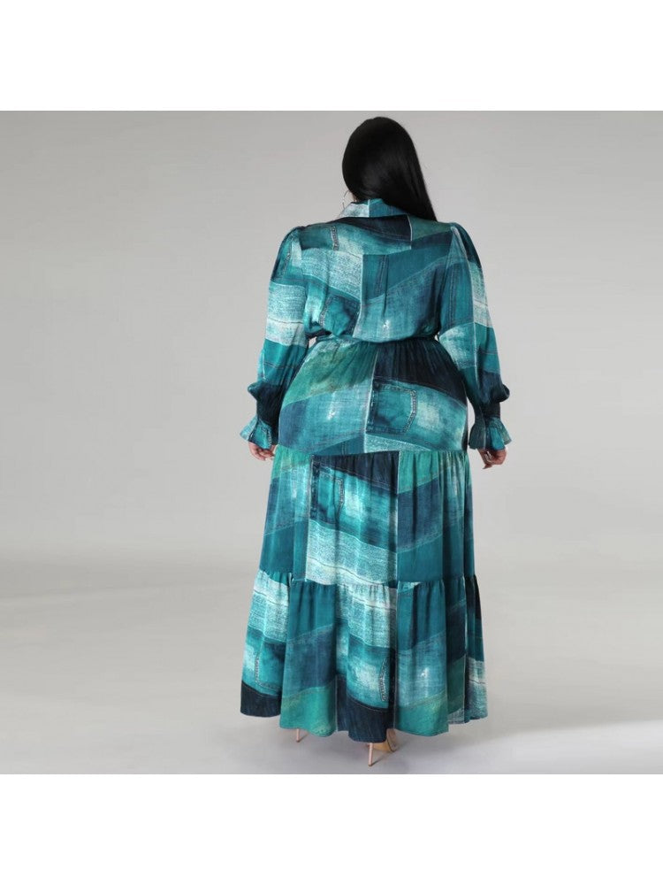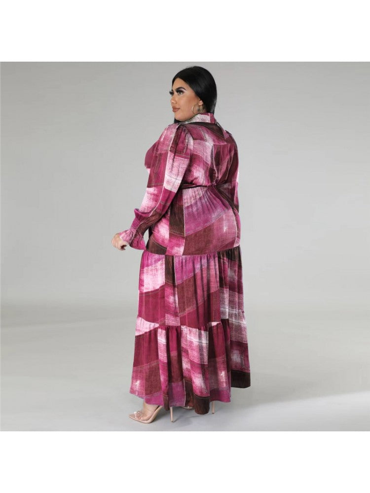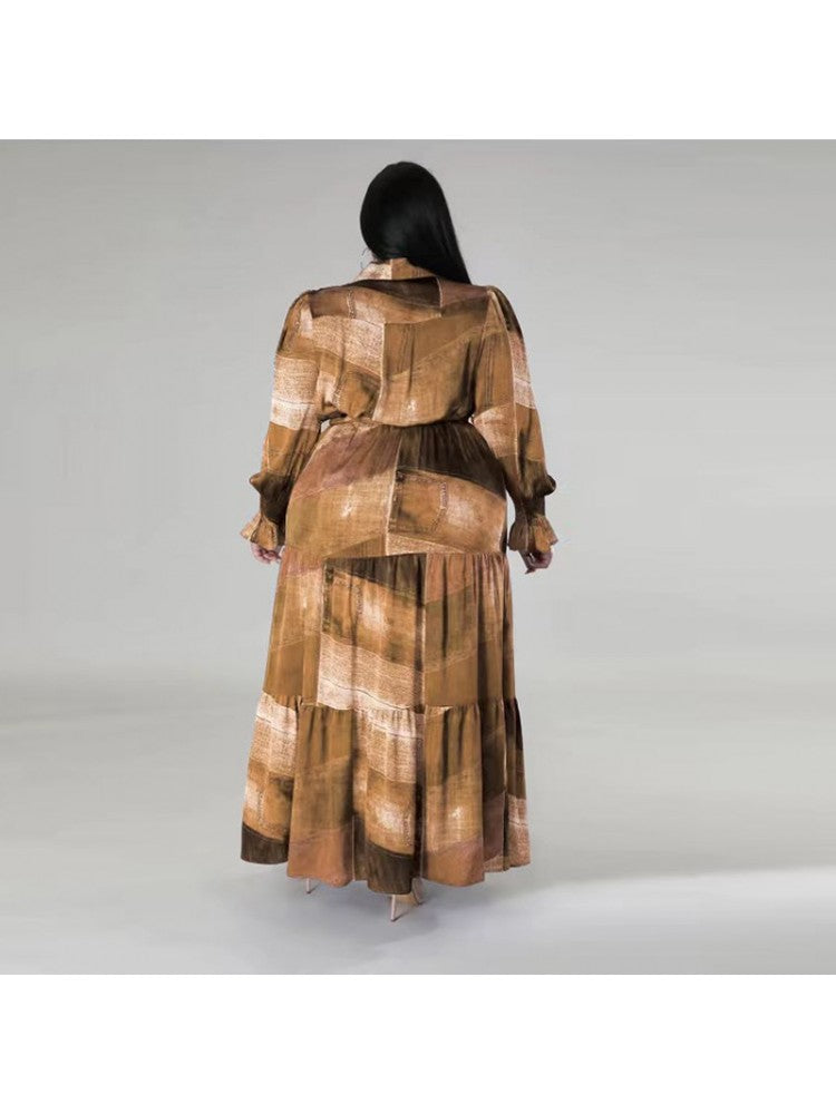 Gradient Color High Rise Loose Plus Long Sleeves Dress