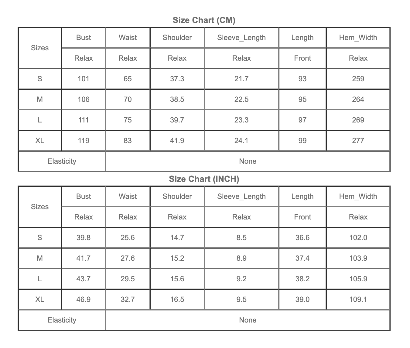 Sizing: