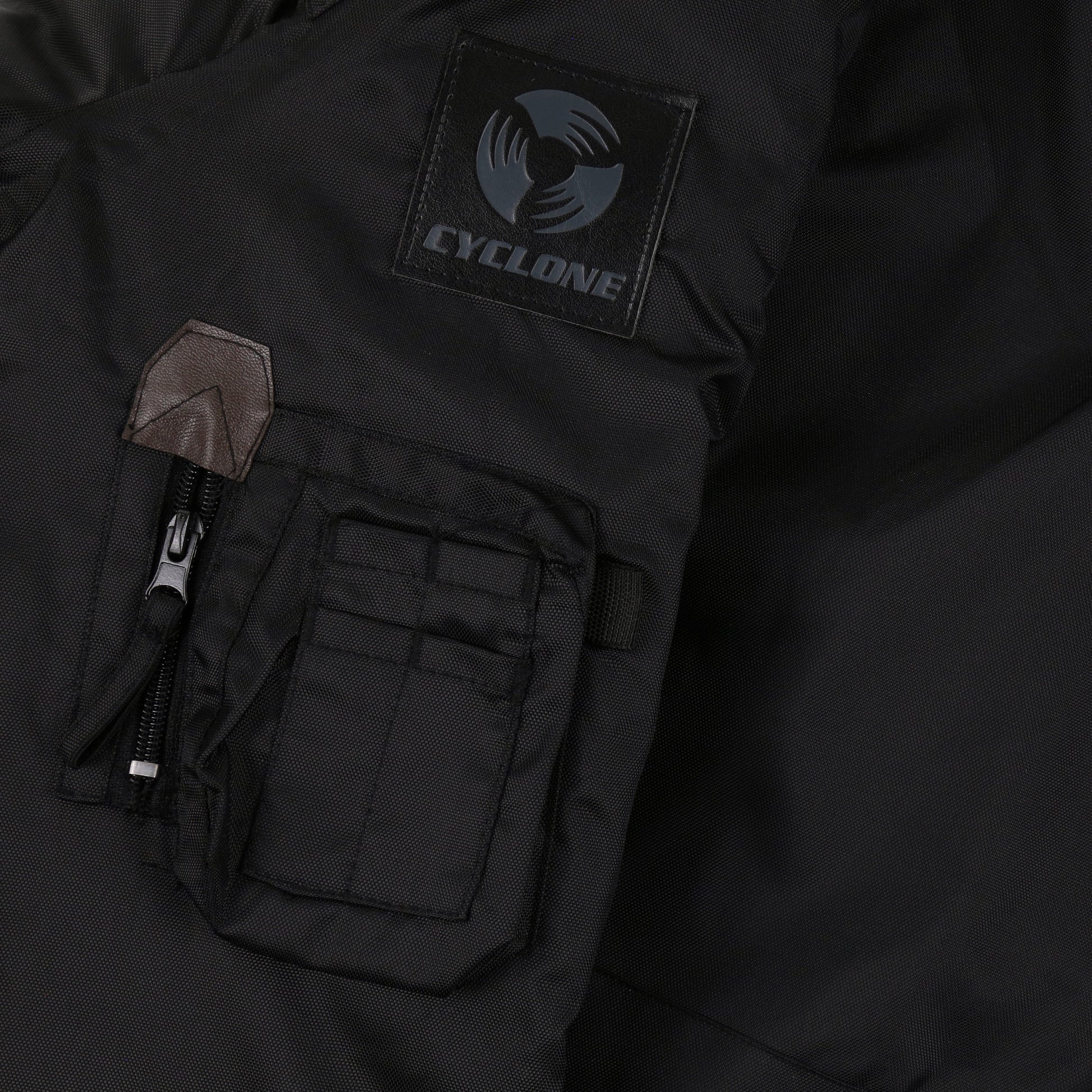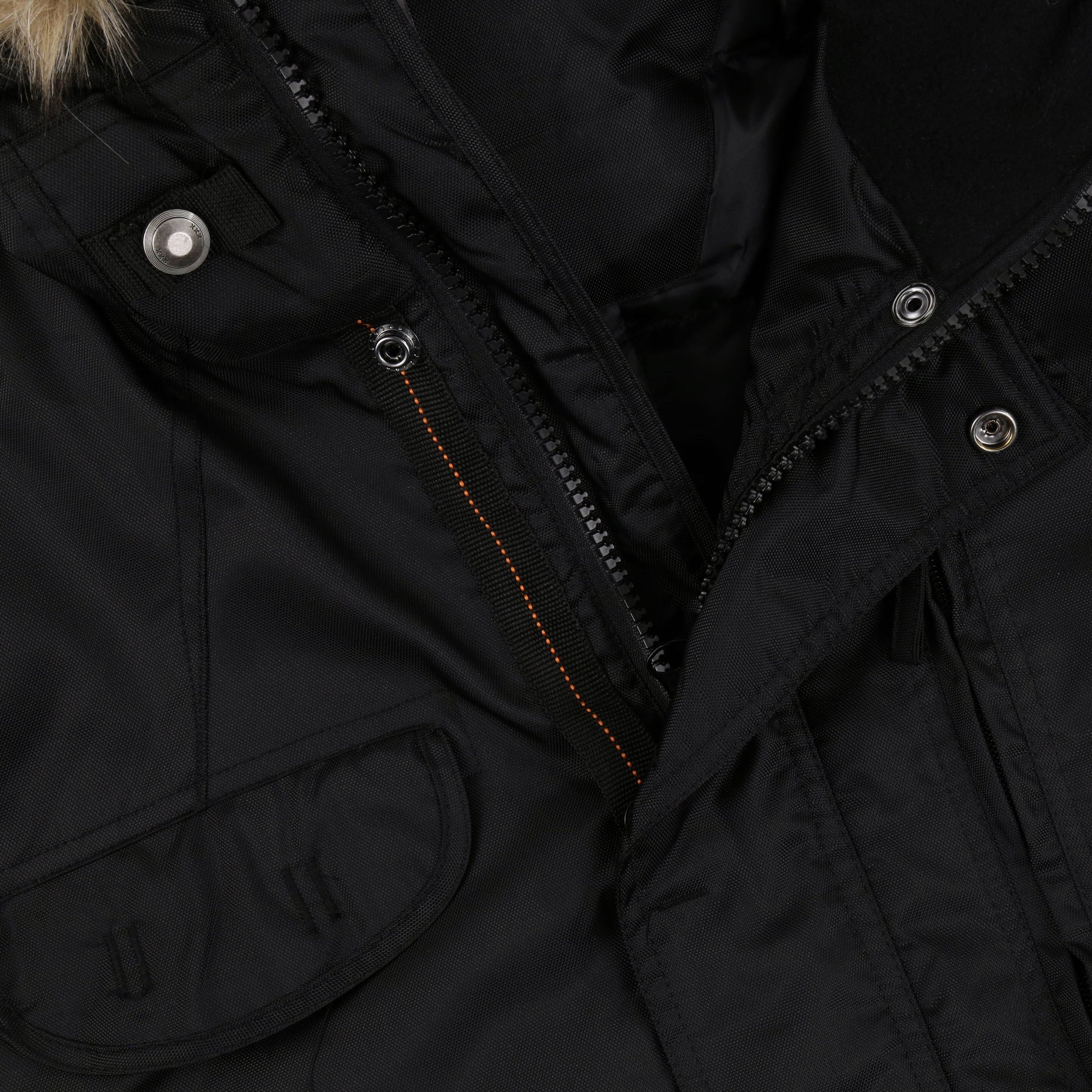 Double inner and outer zip storm flap with stud fastening